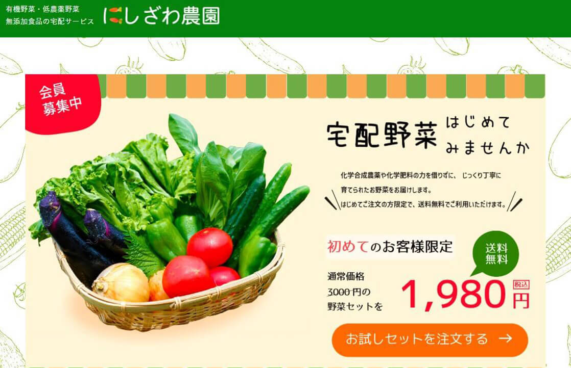 にしざわ農園「宅配野菜」 のLPサイト